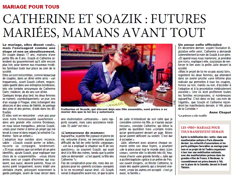 En décembre dernier, nous relevions déjà qu’un confrère d’Anne Chaput, Aymeric Parthonnaud (journaliste à Sud-Ouest), « défendait la loi à sa façon ». Mariage pour tous, ou désinformation pour tous ?